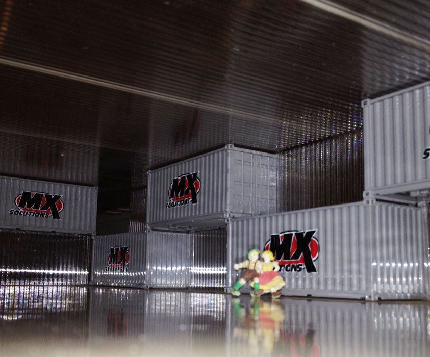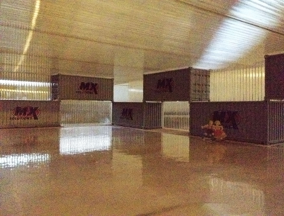 Sistema di costruzione a costi contenuti e controllati anticipatamente. Composizione del volume realizzata con container riciclati (Plastico della proposta all'Ente).